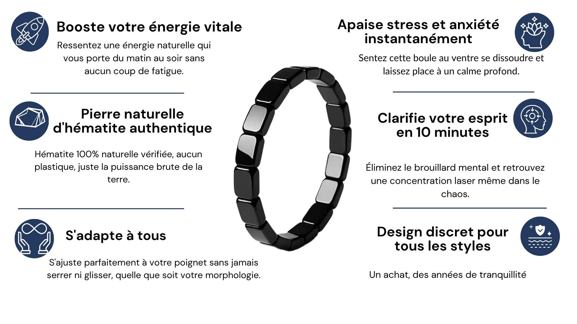 Forgé dans une hématite mythique, ce bracelet réveille ta force intérieure, recentre ton énergie masculine et t’aide à reprendre le contrôle de ton corps — naturellement, sans artifices, sans bruit. Juste toi… en version plus puissante