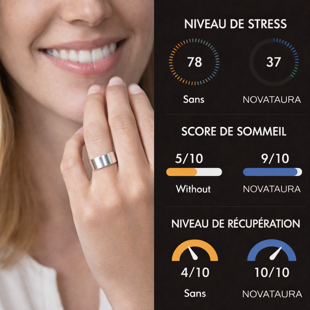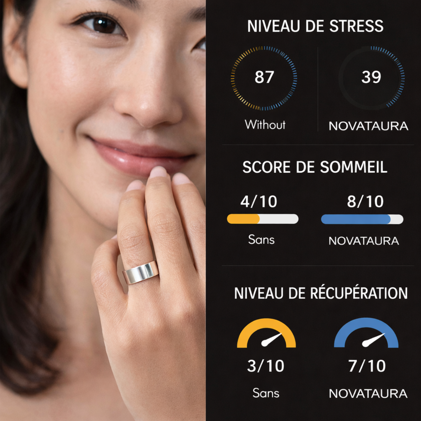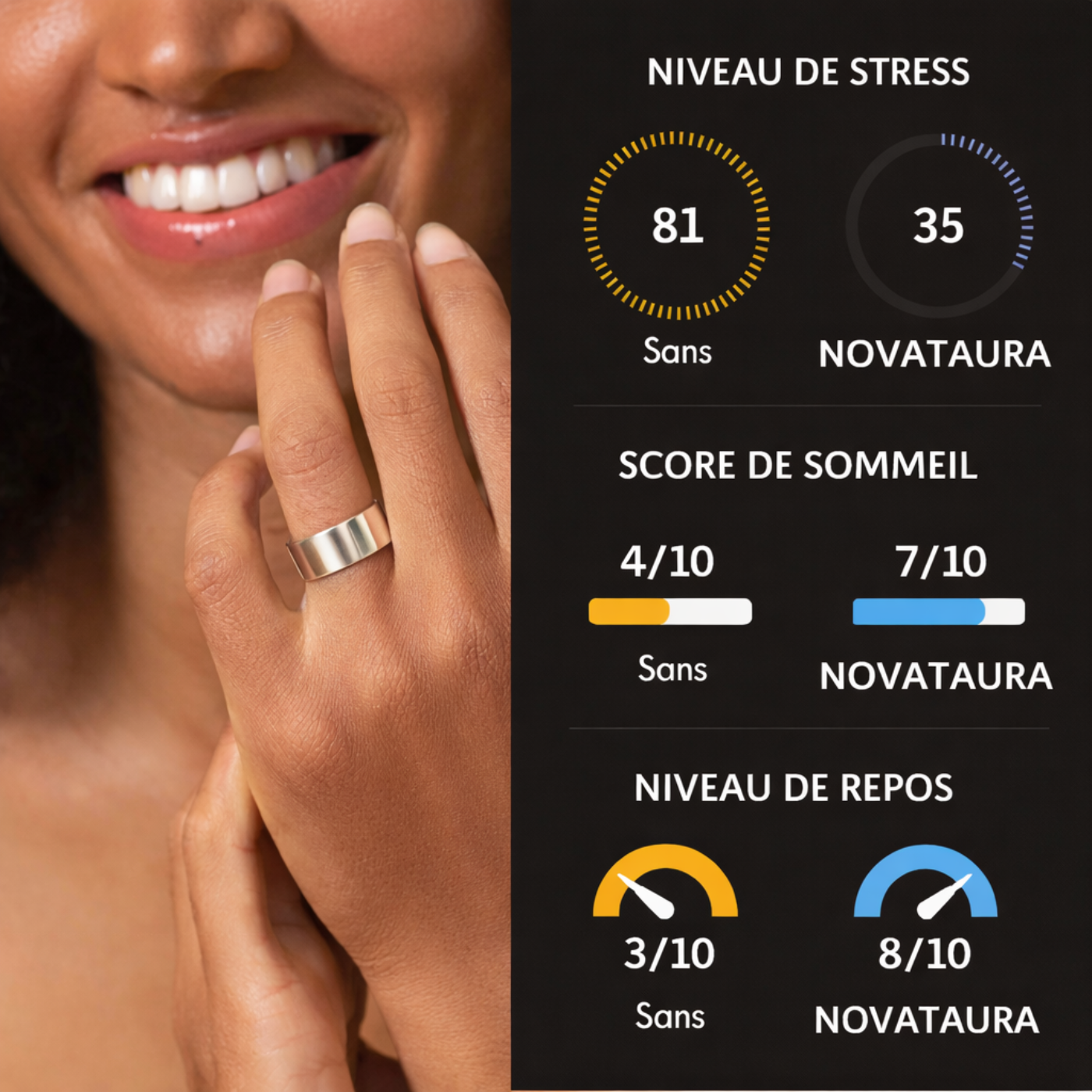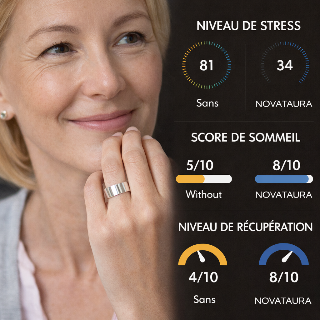 « Depuis que je porte la bague Novataura, mon sommeil est bien plus réparateur. Je m’endors plus facilement et je me réveille moins fatiguée. Je ne pensais pas voir un effet aussi rapide. »